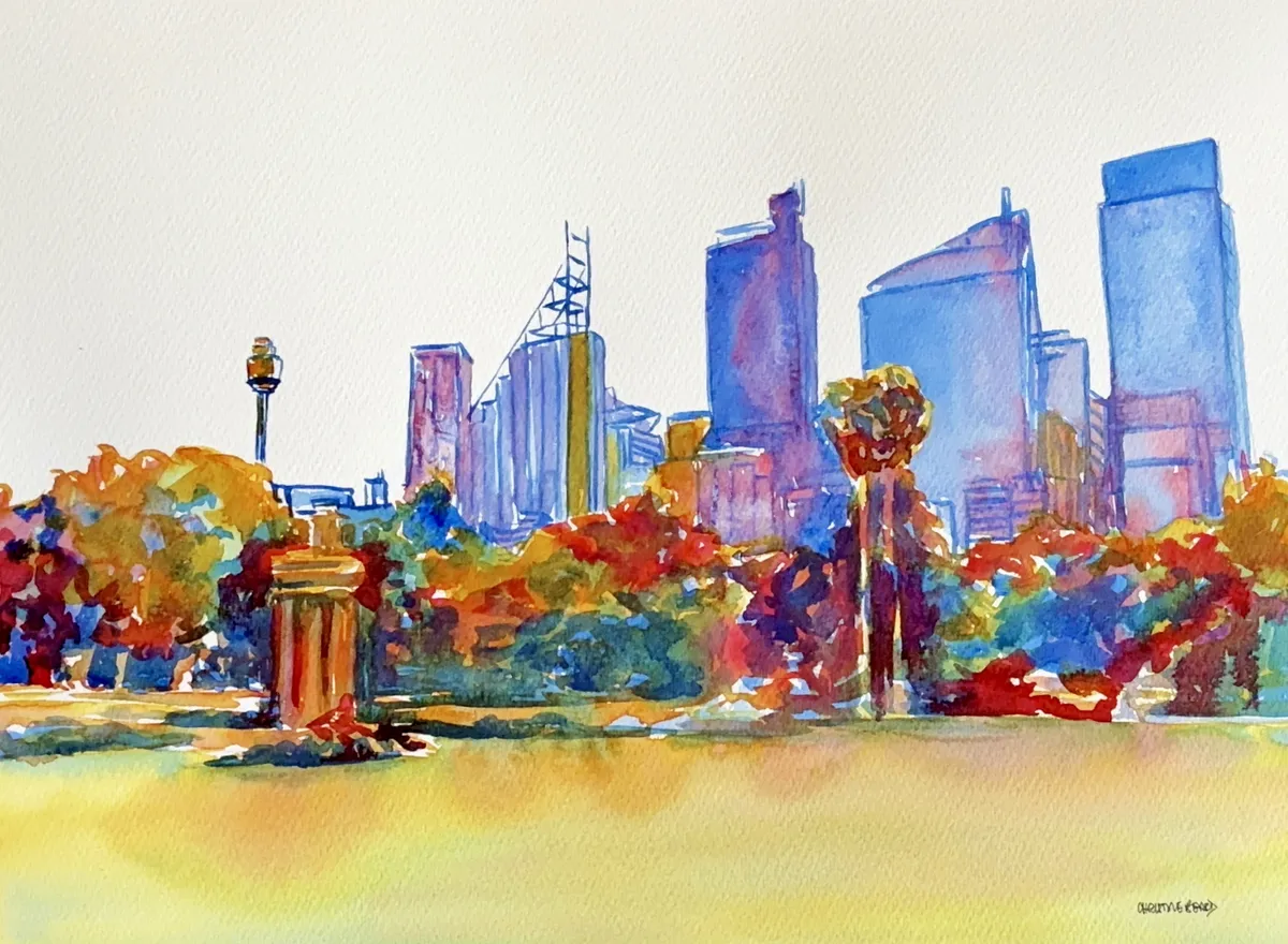 Sydney Skyline Symphony By Christine Beard 2024 Watercolour On Paper 41 cm W x 31 cm H.jpg