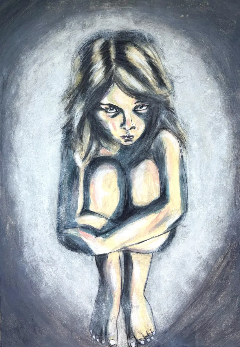 « Humanity Staring at You », serie. These eyes don’t look away. Bodies folded inwards, tense, carved in raw vulnerability. Here, humanity is the one watching you — asking silent questions. No comfort. No escape. Just an unfiltered face-to-face with what we are.