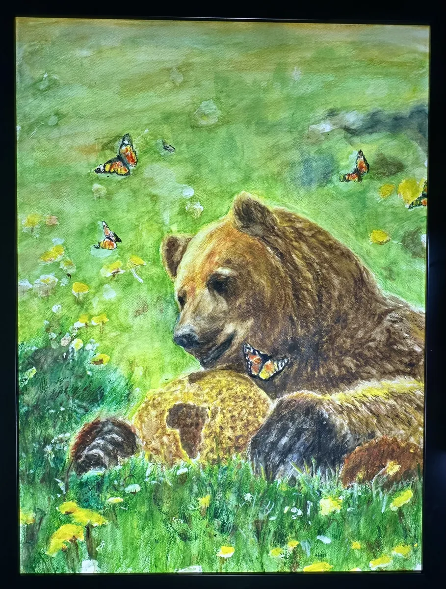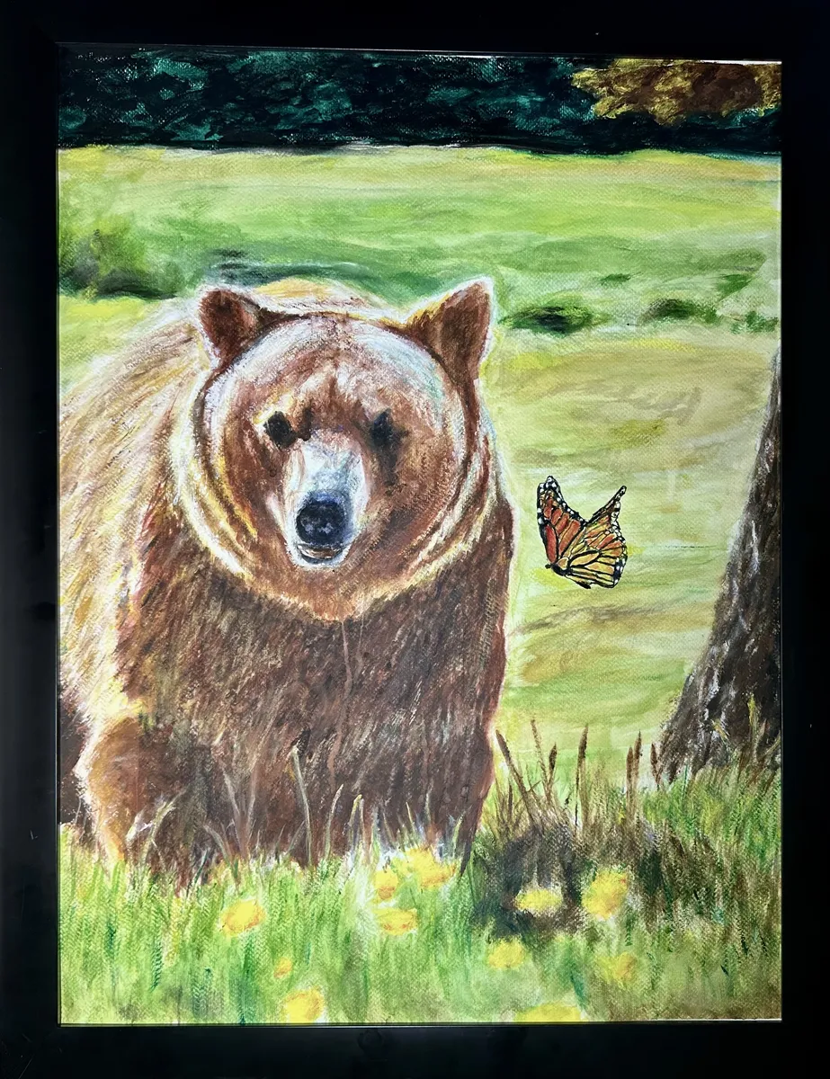 Butterfly leading bear to honeycomb. form Children's book "A Plan To Win!" Book on Amazon $9.99