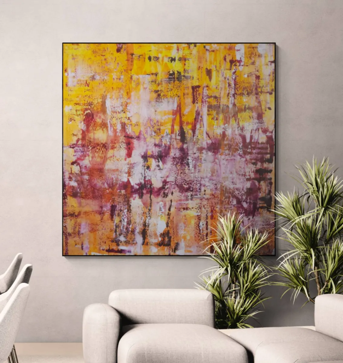 Symbiose embodies the harmonious connection between strength and gentleness. This portrait of a brown Labrador, set against an abstract pink and gold background, evokes timeless loyalty and serenity.