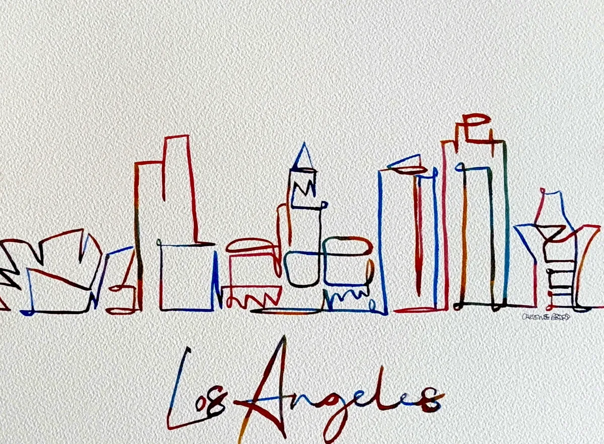 Los Angeles Skyline By Christine Beard 2024 Watercolour On Paper 41 cm W x 31 cm H.jpg