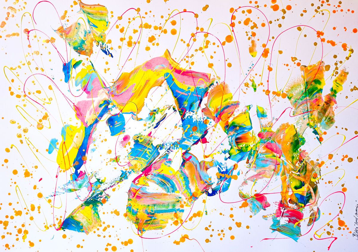 Acrylics, iridescent acrylics & inks on cream doree paper - unframed - world wide shipping available